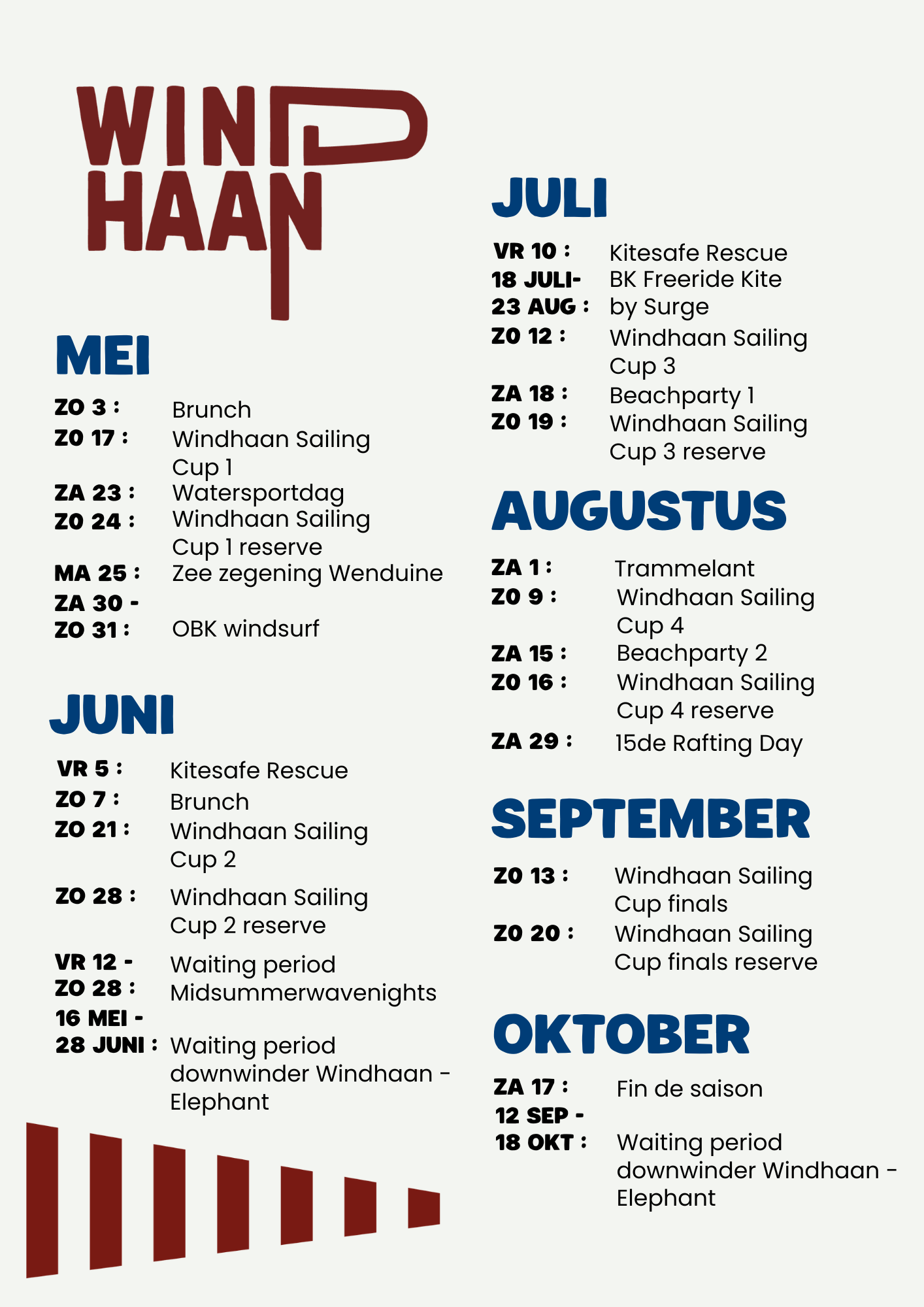 Er wordt begeleiding op het water voorzien alsook vervoer van materiaal, de downwinder is voor leden van Windhaan of Surfing Elephant volledig gratis.