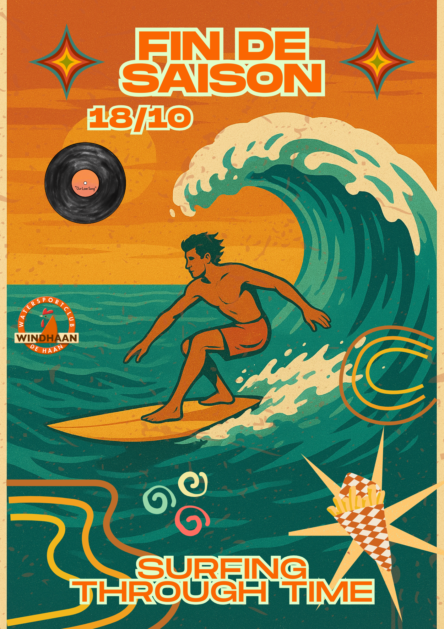 Op zaterdag 18 oktober is er onze fin de saison party. Surfing through time is dit jaar het thema. Haal alvast jullie retro beach kleren en attributen van onder het stof.